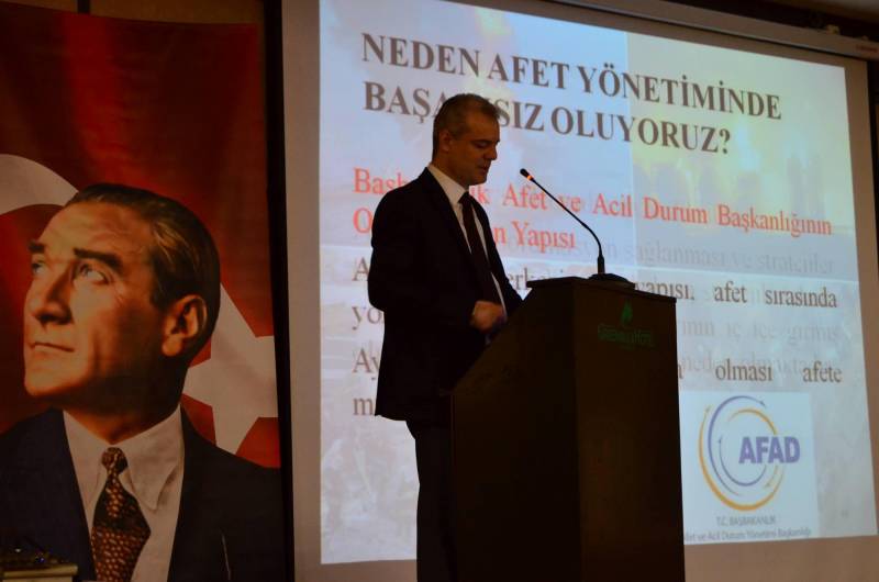 Merkezimiz yönetim kurulu üyesi Prof. Dr. Erman Coşkun 30-31 Mayıs tarihlerinde Gıda, Tarım ve Hayvancılık Bakanlığı’nın Antalya’da düzenlediği Türkiye Afet Müdahale Planı ve KBRN hizmet içi eğitim seminerine davetli konuşmacı olarak katıldı ve “Türkiye’de Afet Yönetimi İçin Kritik Başarı Faktörleri” ve “Afet Lojistiği” konularında seminer verdi. Seminere bakanlık merkez ve taşra teşkilatından 350 katılımcı katıldı.